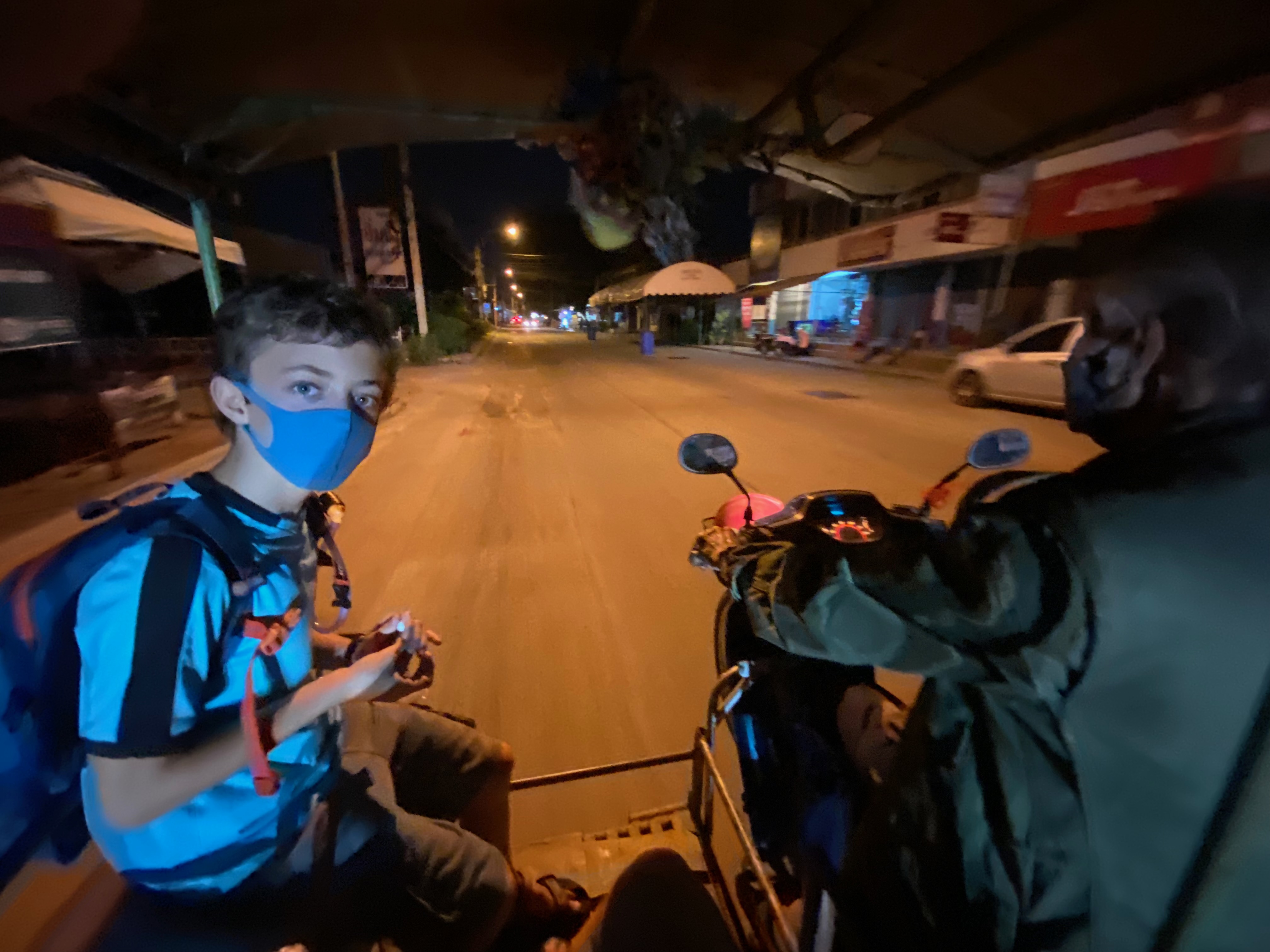 והאמת היא שזה היה ממש מזל, כי הילדים לא רצו שום מופע אור קולי.. אבל הם מאוד רצו לנסוע במונית אופנוע! אז נסענו לנו עם נהג שסיפר לנו שהבן שלו עובד כבר שנתיים בישראל.. הוא לא זכר איפה.. אז נהננו לחשוב שבטח בבארותיים.