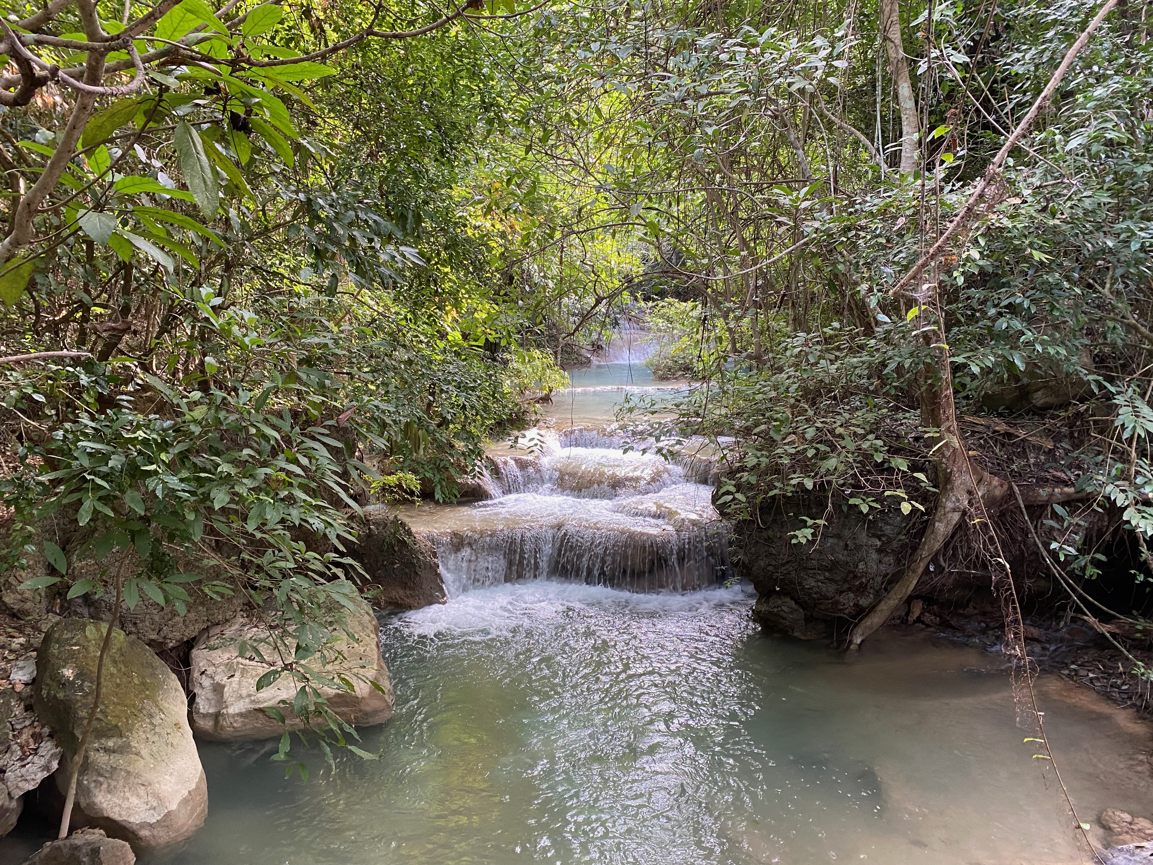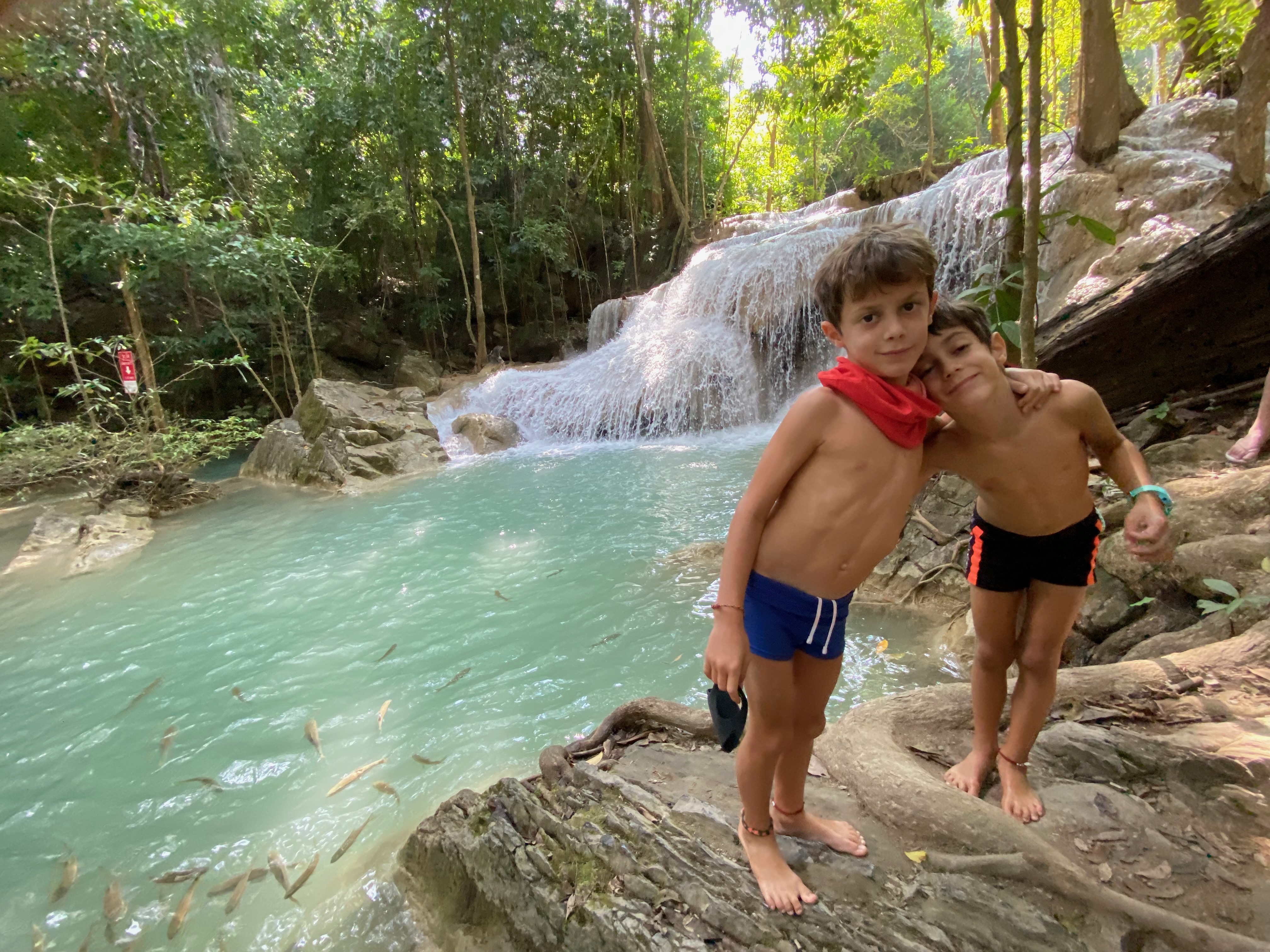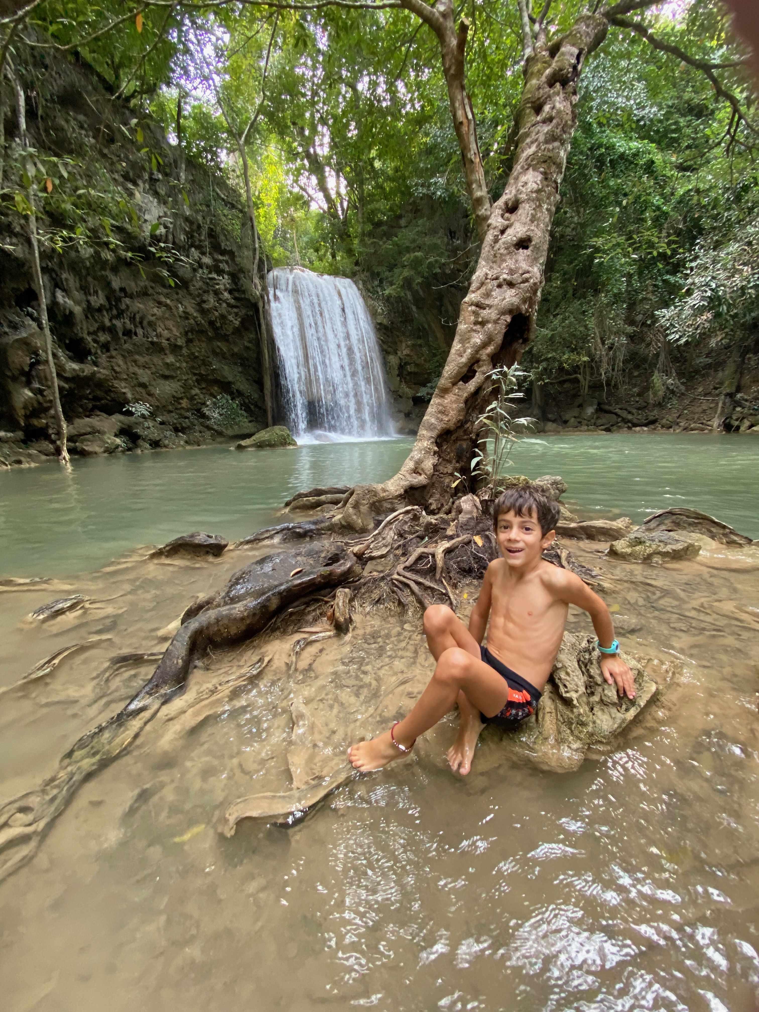 בראשון התארגנו בבקר ויצאנו למפלי ארוואן. ידענו שהם יהיו מפוצצים בתיירים, כי יום ראשון וגם כי יש פסטיבל בקנצ׳נבורי הקרובה, אבל זה מה שהסתדר והלכנו על זה. הנסיעה לשם, כשעה הייתה מתישה ומעצבנת והגענו קצת הפוכים.. אבל המקום הזה, כל כך יפה! וגם העומס לא באמת הורגש.. יש 7 מפלים. במקום מאוד יפה ומסודר. המרחקים בינהם לא גדולים, אבל ה6 והשביעי כבר טיפוס יותר ארוך, אז מלכתחילה לא תכננו להגיע אליהם. במים בצבע טורקיז. מליוני פרפרים ודגים מדגדגים שאוהבים לכרסם את העור היבש ברגליים. חזרנו בערב למסעדה האהובה עלינו פה והבטחנו להם שנתראה שוב גם למחרת.