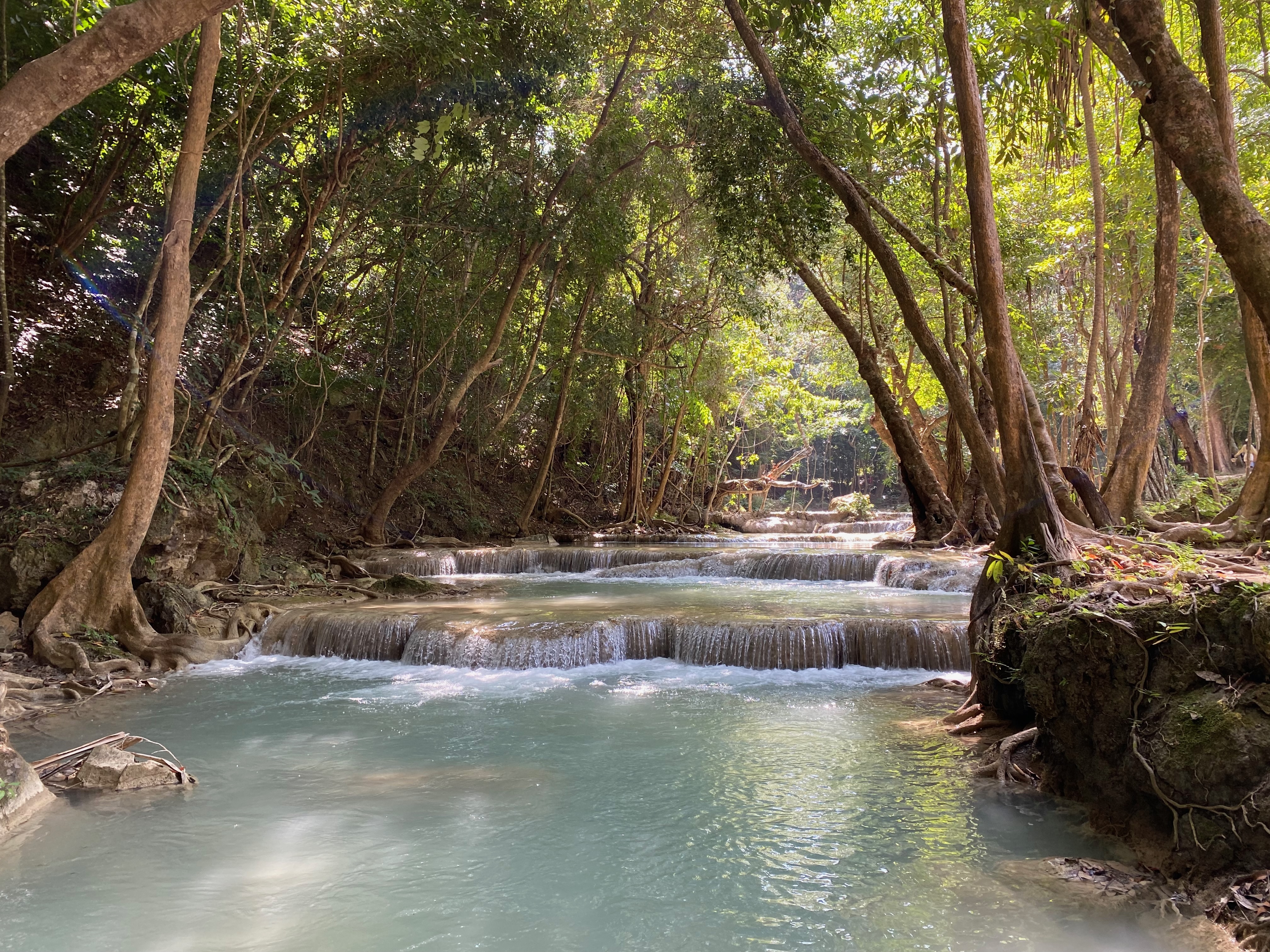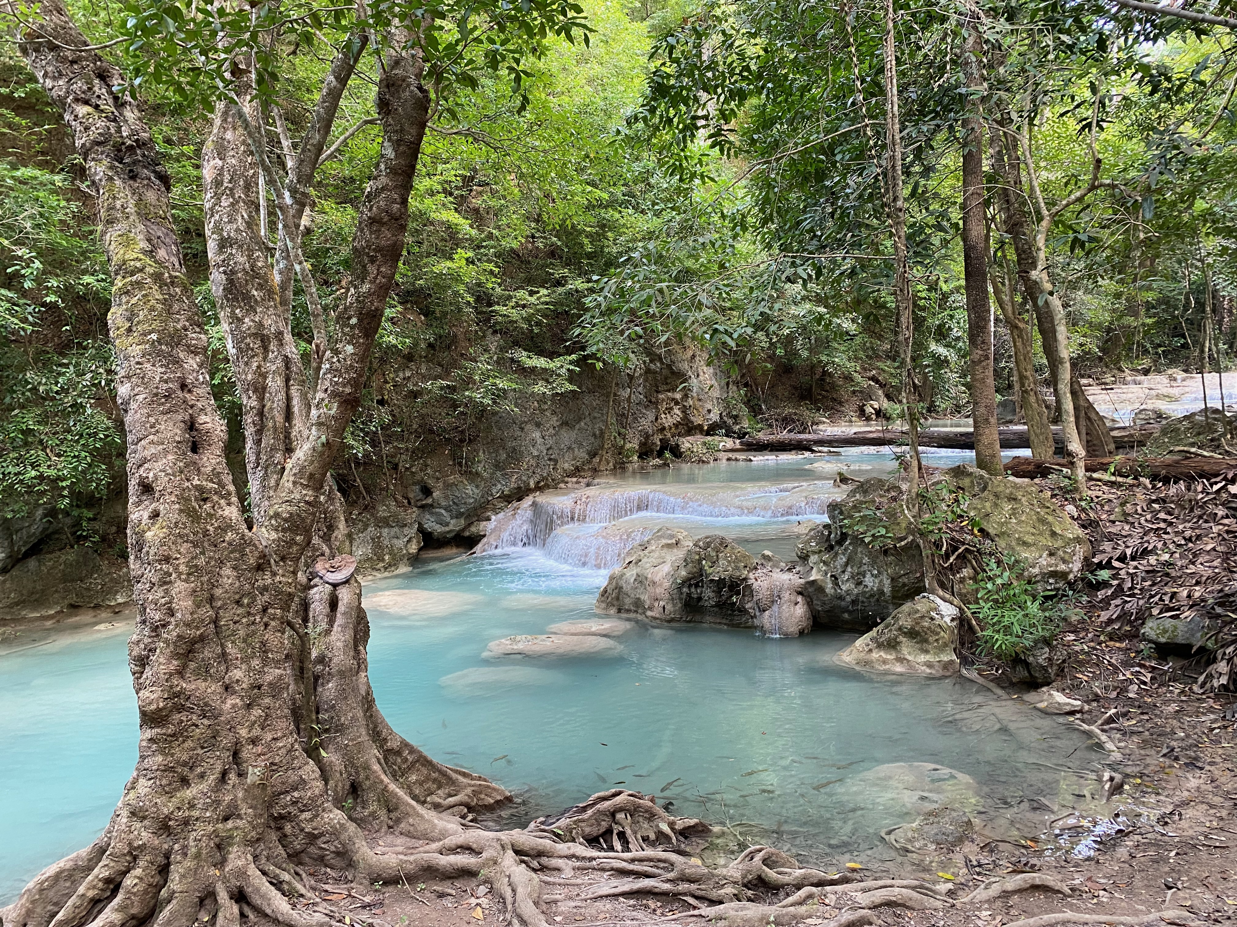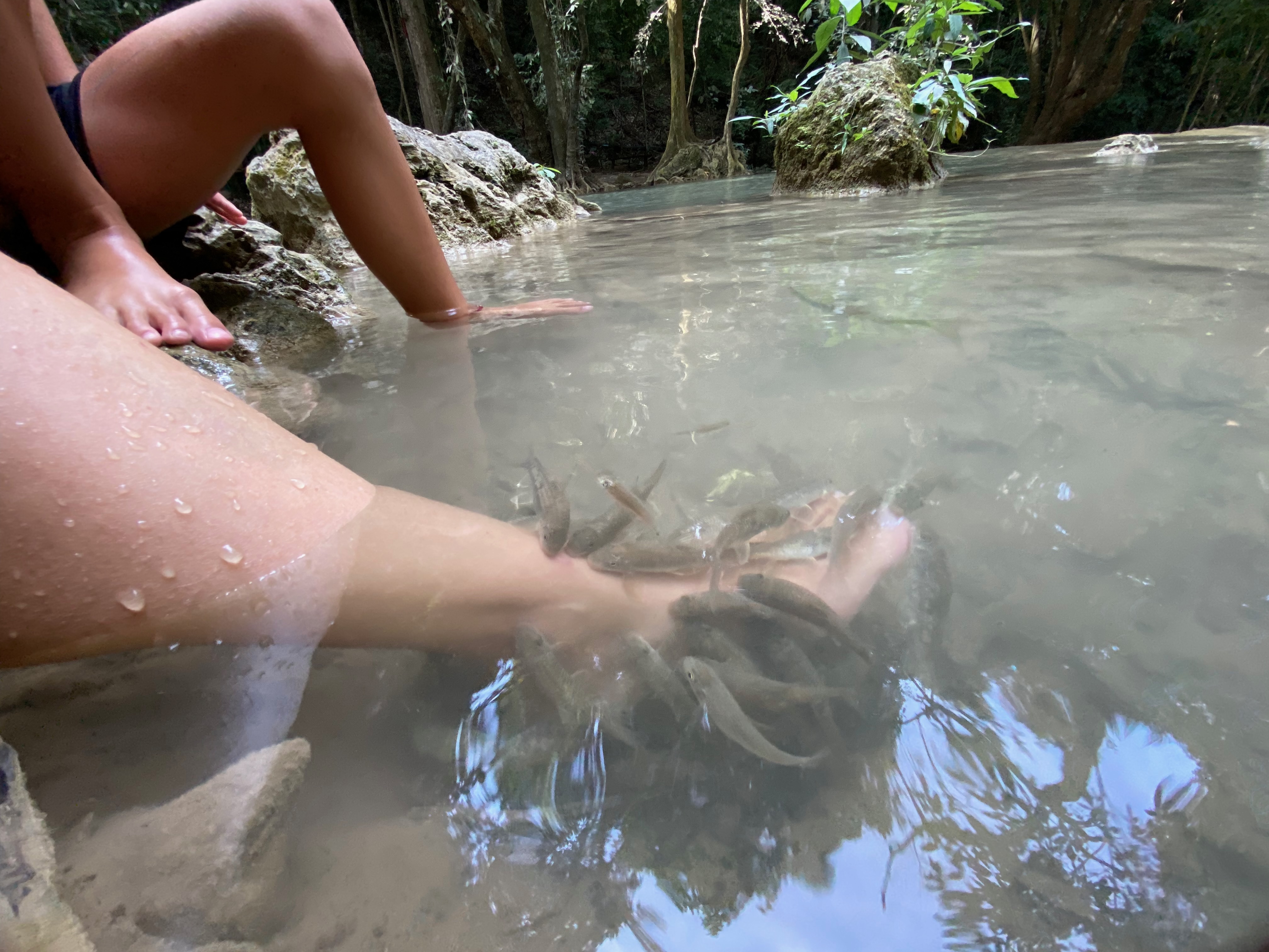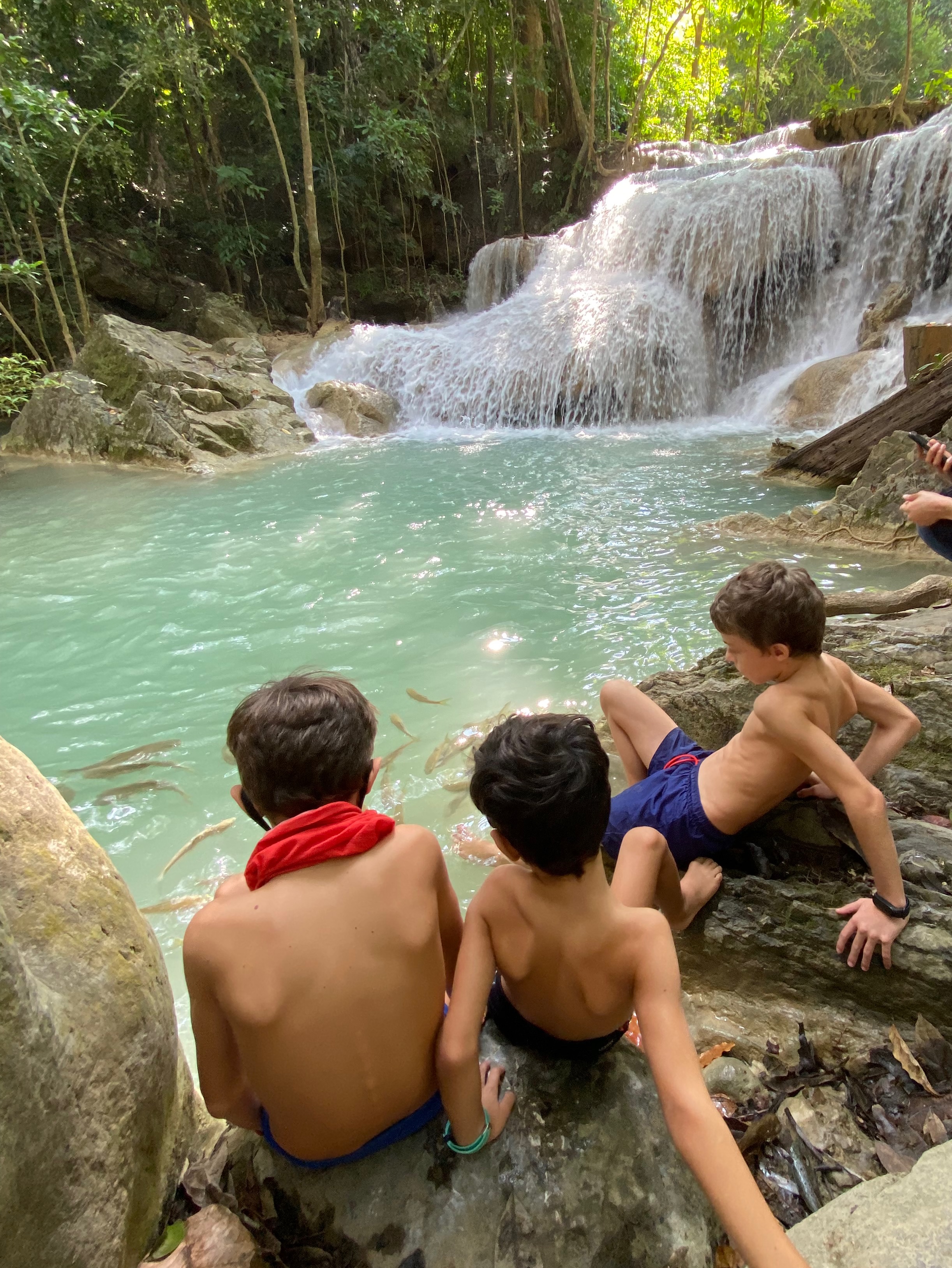 בראשון התארגנו בבקר ויצאנו למפלי ארוואן. ידענו שהם יהיו מפוצצים בתיירים, כי יום ראשון וגם כי יש פסטיבל בקנצ׳נבורי הקרובה, אבל זה מה שהסתדר והלכנו על זה. הנסיעה לשם, כשעה הייתה מתישה ומעצבנת והגענו קצת הפוכים.. אבל המקום הזה, כל כך יפה! וגם העומס לא באמת הורגש.. יש 7 מפלים. במקום מאוד יפה ומסודר. המרחקים בינהם לא גדולים, אבל ה6 והשביעי כבר טיפוס יותר ארוך, אז מלכתחילה לא תכננו להגיע אליהם. במים בצבע טורקיז. מליוני פרפרים ודגים מדגדגים שאוהבים לכרסם את העור היבש ברגליים. חזרנו בערב למסעדה האהובה עלינו פה והבטחנו להם שנתראה שוב גם למחרת.