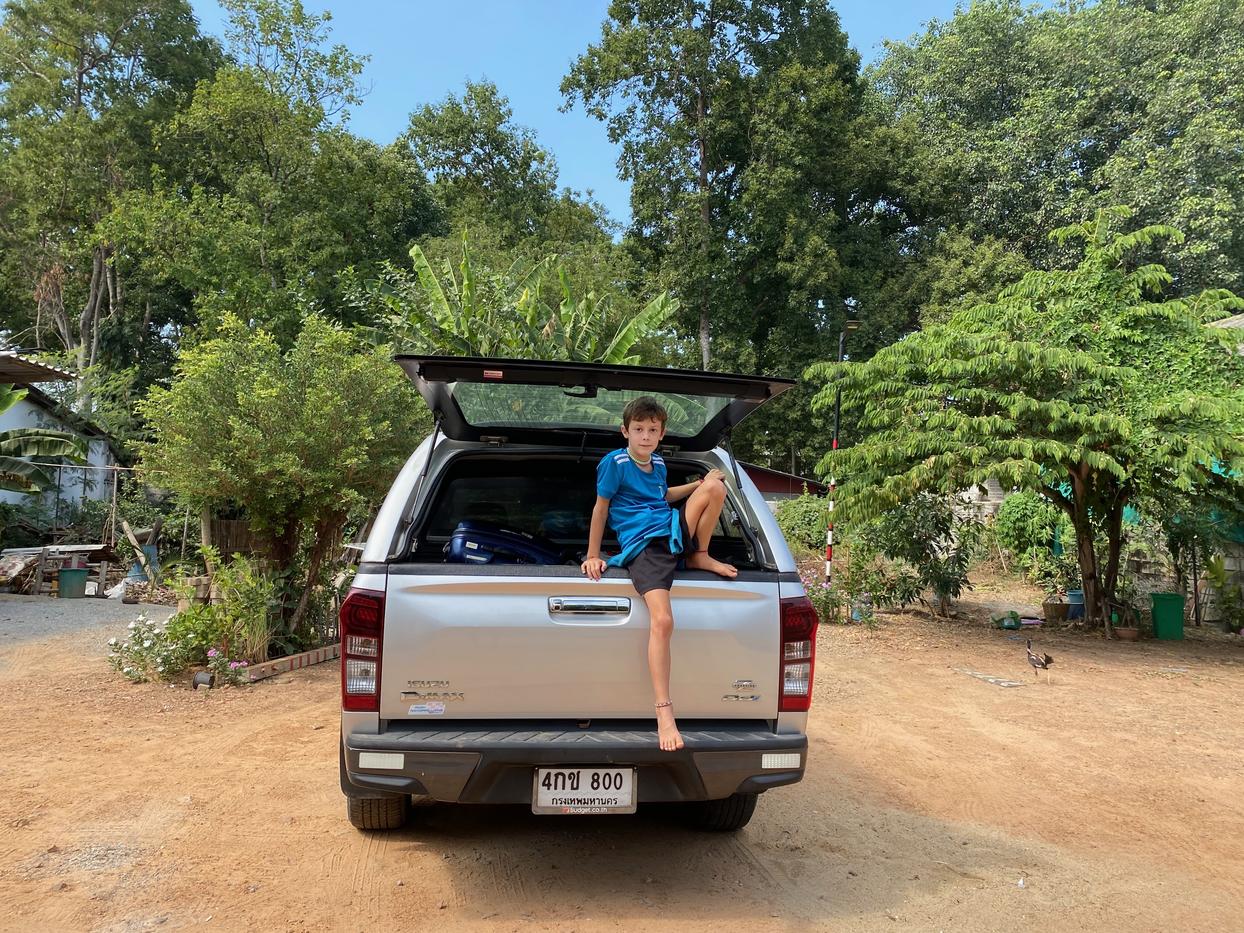 אתמול בבקר גל הכין לנו לוז נסיעה מפורט עד צ׳אנג מאי, בהמשך להצלחה של תכנון הנסיעה הקודמת והודאות והבטחון שהוא נותן לילדים, כך ידענו מתי יוצאים מתי עוצרים ולכמה זמן בכל מקום, במטרה להגיע לפני החושך. ארבע וחצי שעות נסיעה, אפילו הילדים אמרו שזו סהכ נסיעה די קצרה.. בעצירת הצהריים שגל תכנן במקדונלדס הופתענו למצוא את עצמינו בקניון גדול, שנראה לנו עצום ומפואר, והרגשנו בו קצת עכברי כפר שלא רגילים למקומות כאלה.. הילדים נהנו מהארקייד ומהתפאורה כריסטמס ובכללי היתה אחלה עצירה מרעננת. ואז התחלנו לספור אחורה.. עוד 100 ק״מ אחרונים (מתוך 2000) עוד שעה אחרונה.. עוד 10 דק.. (אגב בכל הנסיעות הבנו שה10 דקות האחרונות הן הכי קשות.. הילדים כבר מתרגשים, וכבר מתים להגיע ואז הם מתחילים להציק אחד לשני ולנו נותר לשמור על צ׳יל ולא להתחיל לצרוח כדי להצליח להגיע במצב רוח טוב:)).
