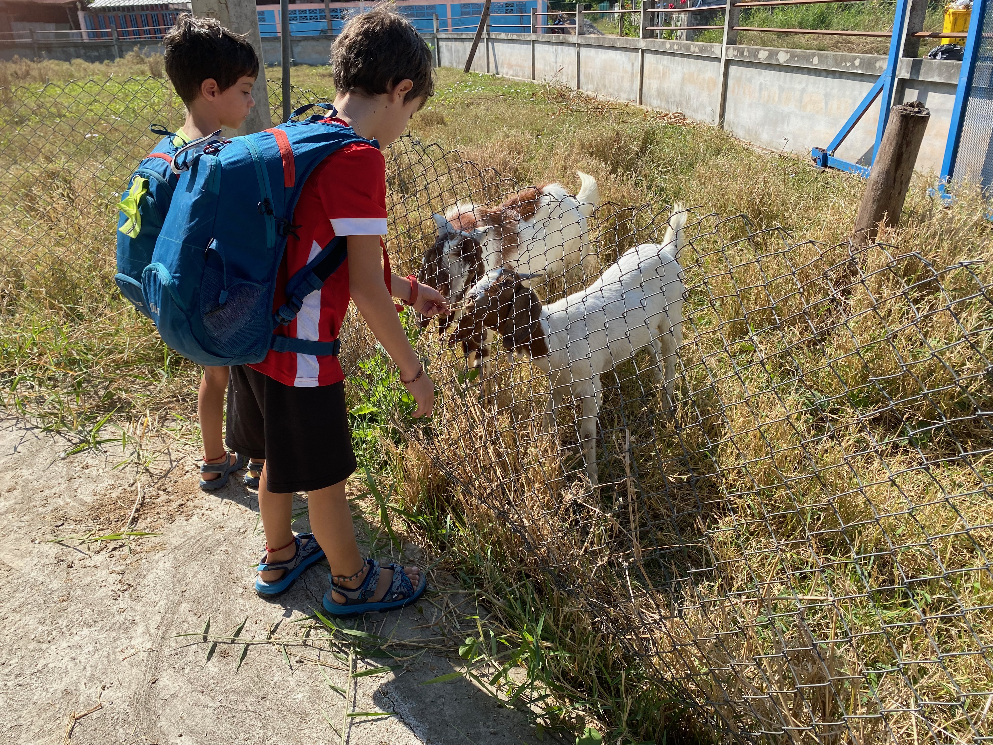 מתחת לדירה שלנו חיות שתי עיזים.. הילדים מאוד התחברו אליהם ואפילו נתנו להם שמות – פרסי וג׳קסון. לרשימת הדברים שצריך שיהיה לנו בבית כשנחזור נוספו עכשיו עיזים.