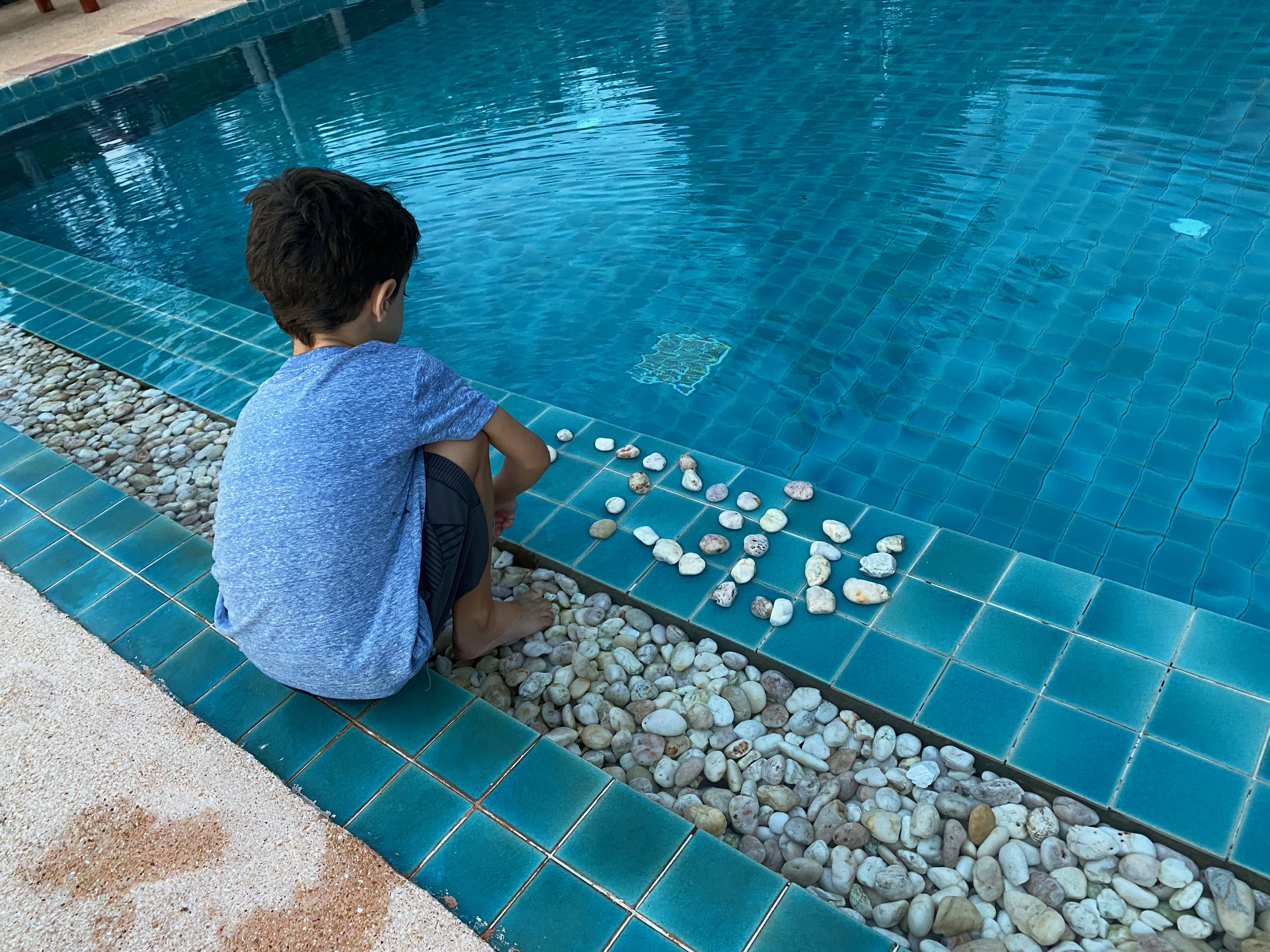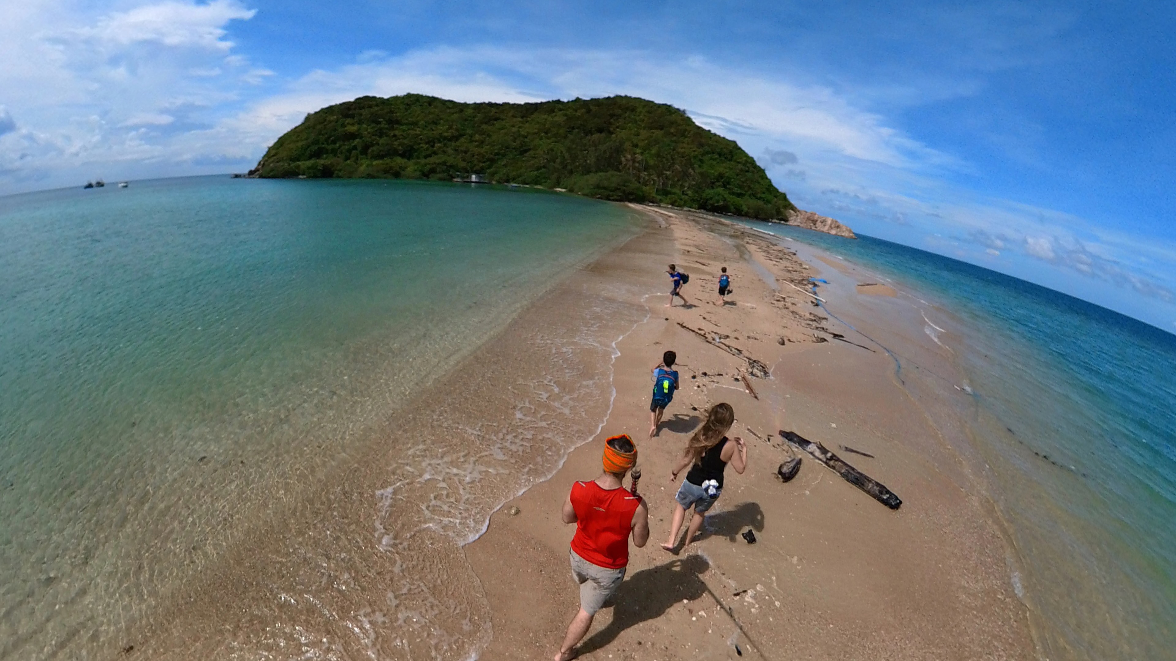 וצהריים אחר נסענו לקו-מה, שזה בפינה הצפון מערבית של האי, אי קטן ששובל יבשה שחשוף בשפל מחבר אותו לקו פנגן. נוף מקסים ושיעור מעולה מעידו על איך מקפיצים אבנים.. נרשמה הצלחה חלקית!