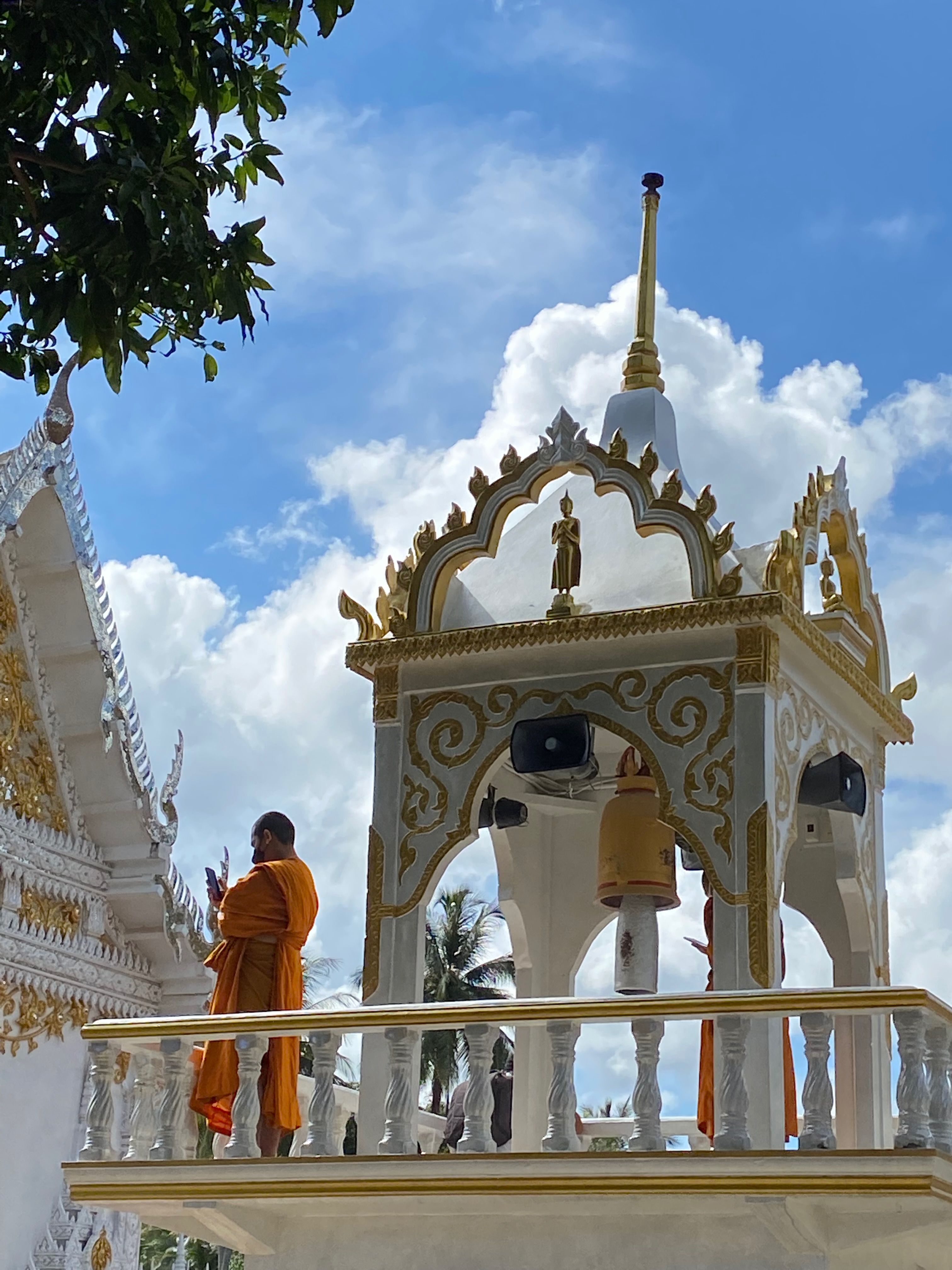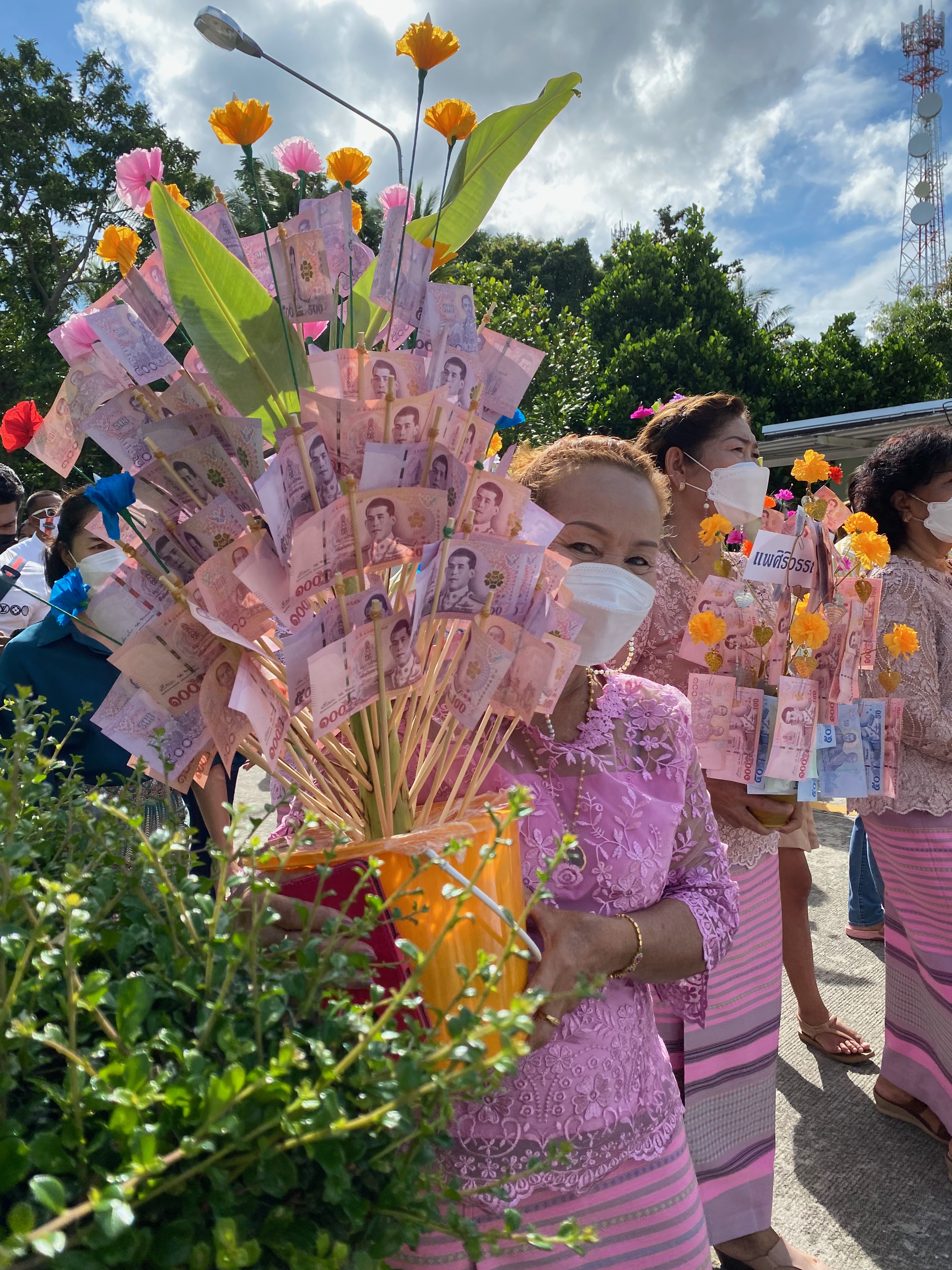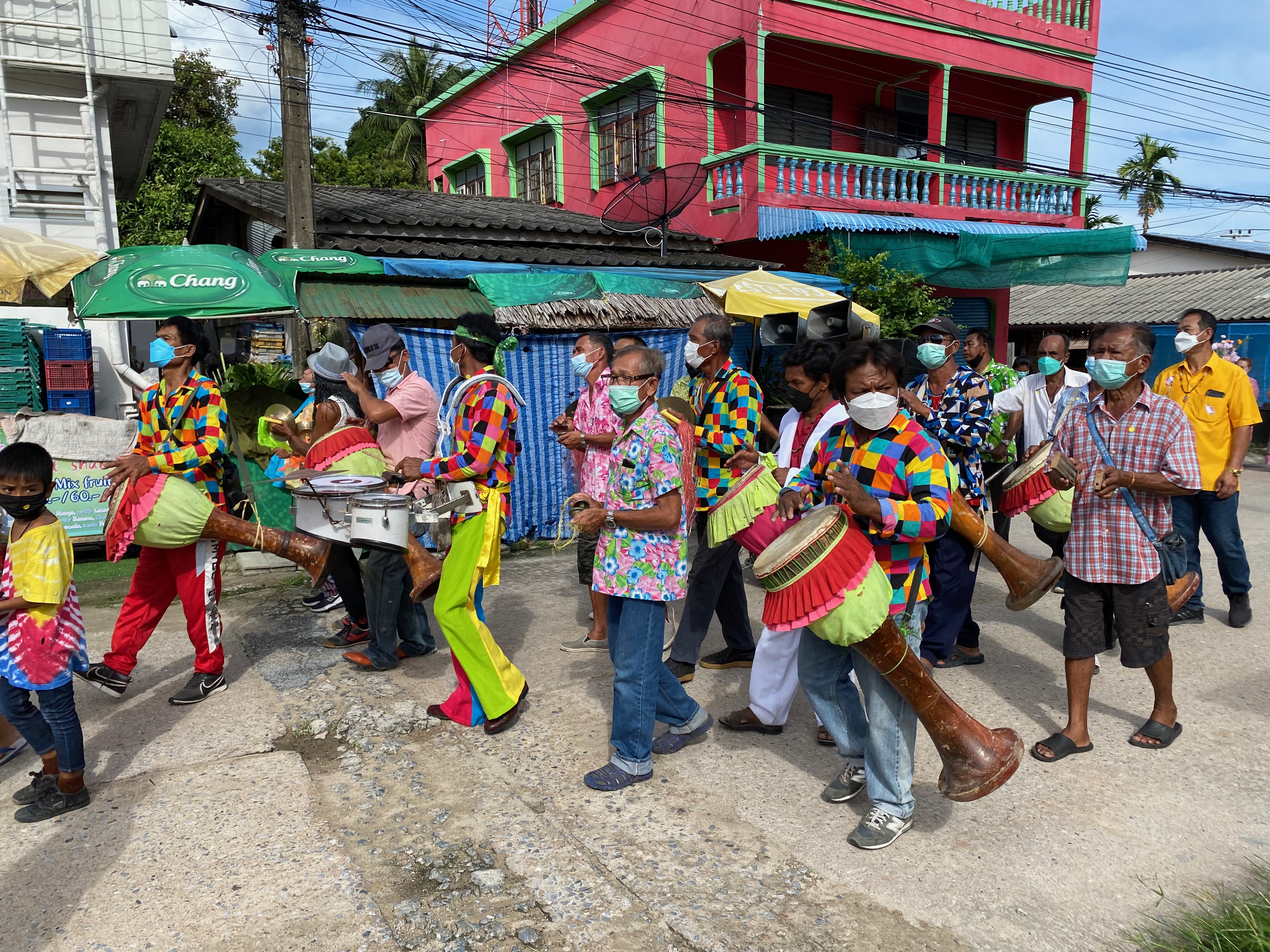 וגיליתי שמחוץ למלון שלנו ממש, מתחילה תהלוכה. בנות לבושות יפה מתקדמות תוך ריקוד, גברים מתופפים ועוד נשים הולכות עם סוג של כדים בתוכם פסלי עצים קטנים שעליהם שטרות של כסף. חזרתי מהר לחדר וצירפתי אלי את שני הקטנים, בזמן שגל העיר את עידו והם הצטרפו בהמשך.. מסתבר שהיום הוא יום המקדש פה, ועצי הכסף הם תרומות למקדש. התהלוכה התקדמה בריקודים למקדש שם המשיכה לרקוד, והיה מקסים.