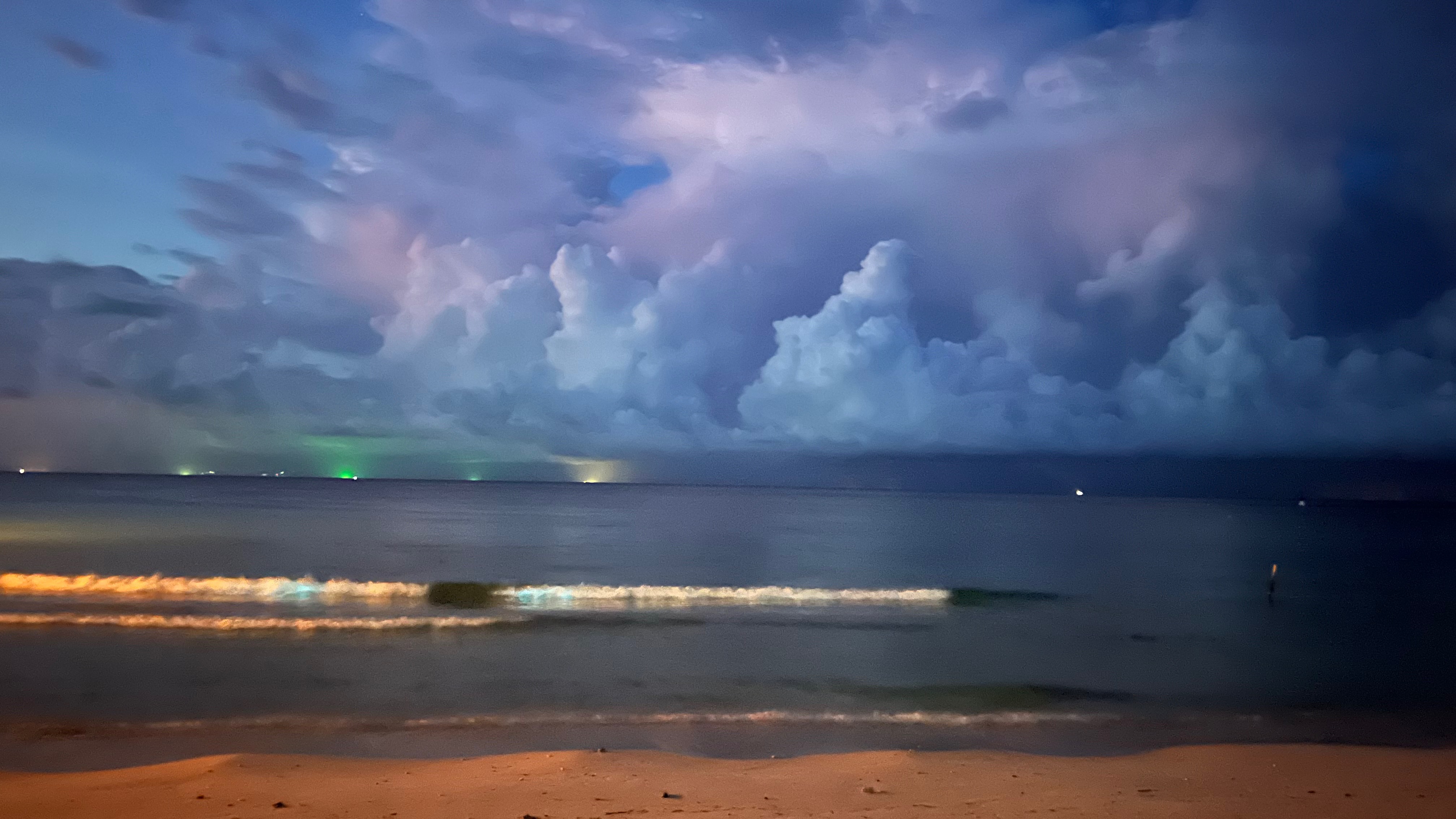 והיה ערב אחד שישבנו עם השכנים שלנו בצד השני של המלון, זה שיושב על הים. זה היה הערב האחרון שלהם פה לפני שהם מתחילים להתקדם לכיוון הארץ, ופתאום הבחנו שחלק מהגלים זוהרים בירוק זרחני.. פלנקטון זוהר האיר אותם, וזה היה פשוט מהמם.