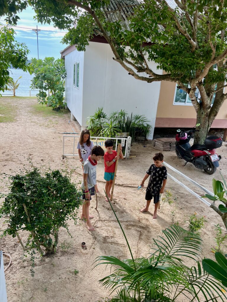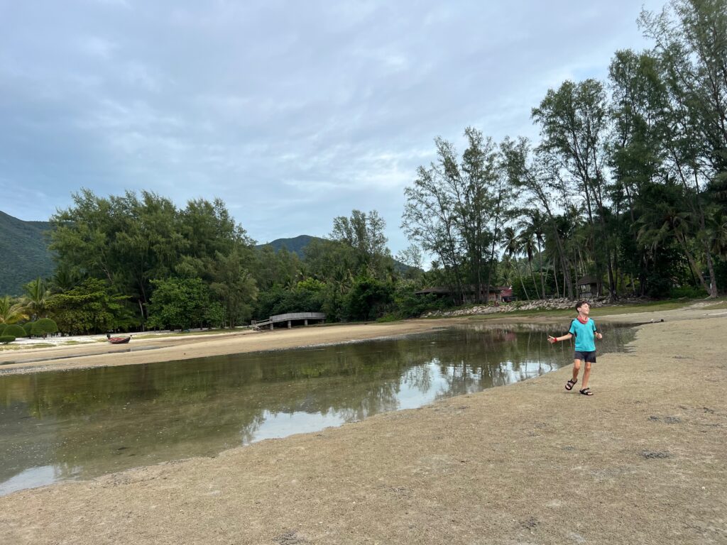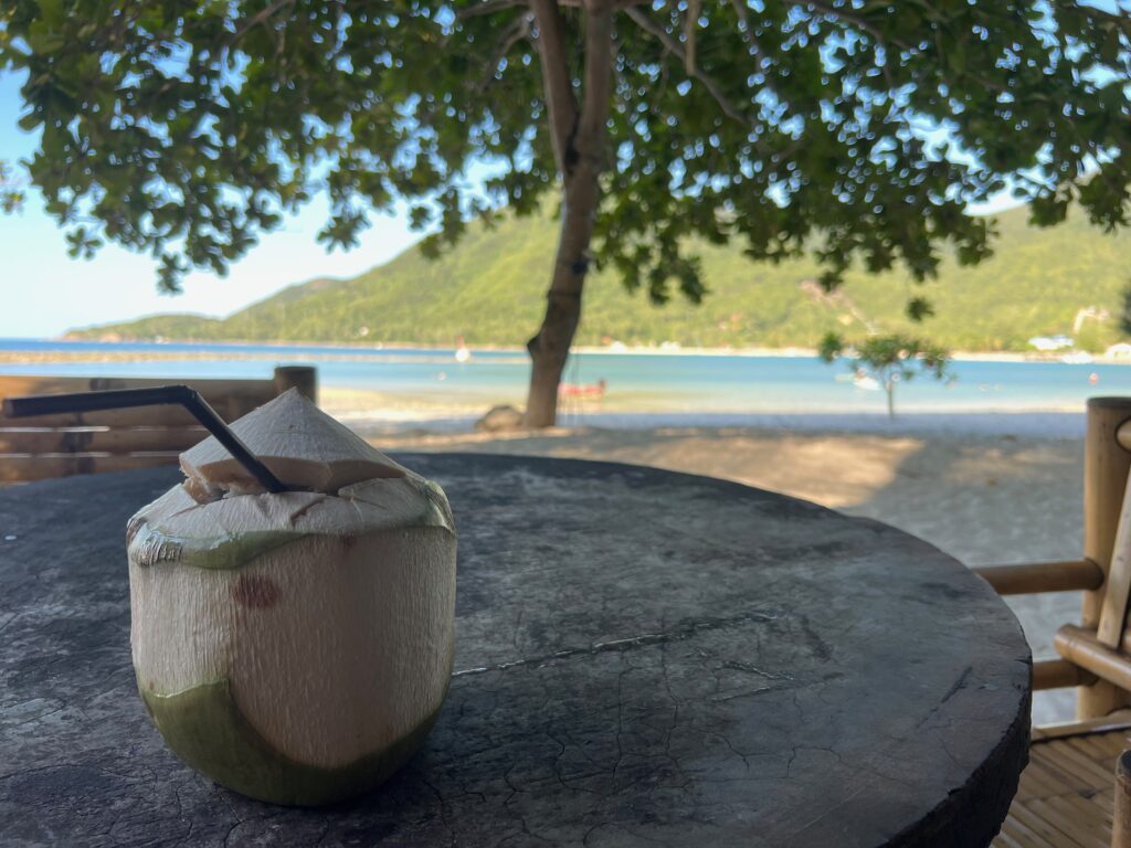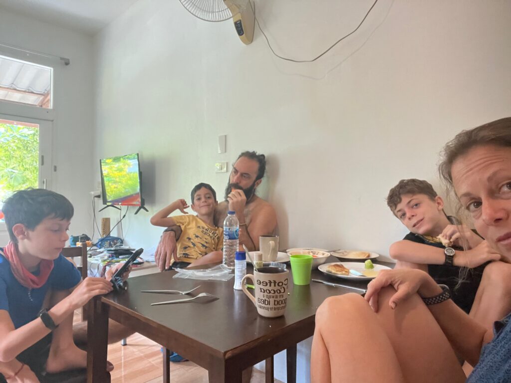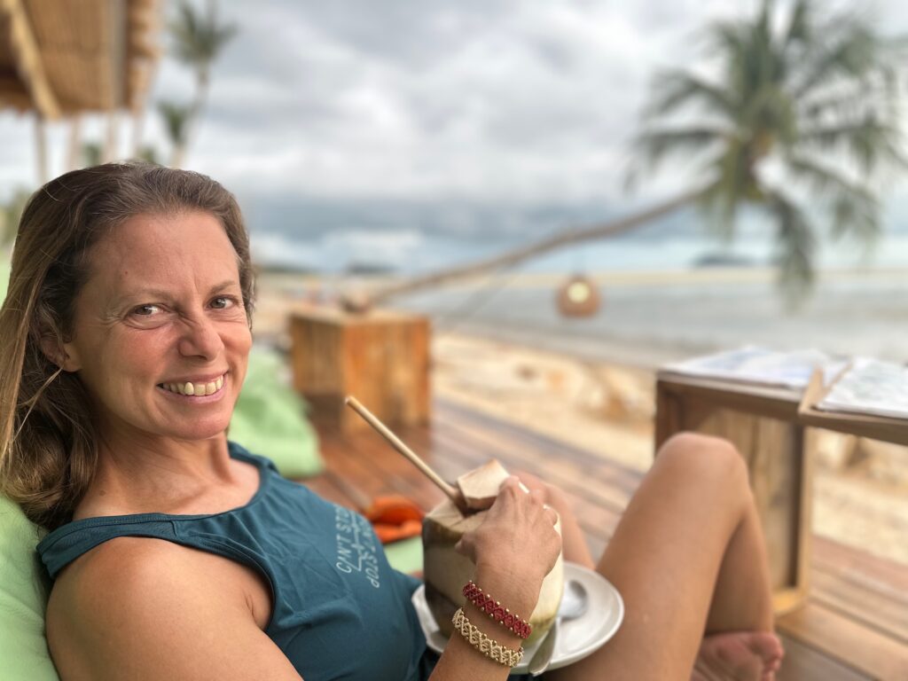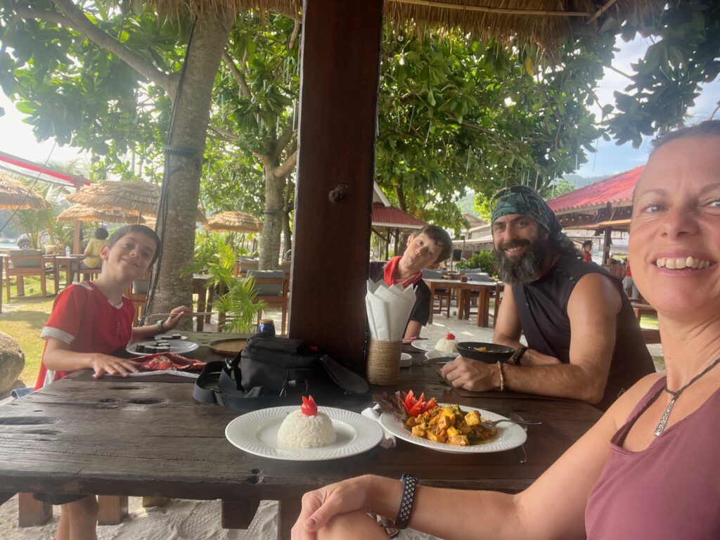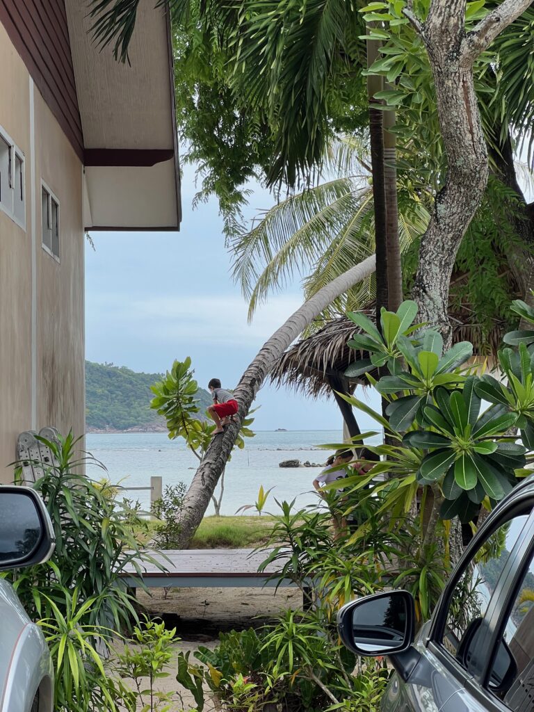והחוף הצמוד יפהפה, וכשבאים אליו מוקדם בבקר יש מלא דגים שקופצים סביבך.. ויש גם מסעדה קטנה שכל יום שתיתי בה את הקוקוס שלי.. (ידעתם כמה קוקוס זה דבר בריא? בכל ארוחה בבית החולים הביאו לי גם קוקוס) מקום מושלם להחלים בו. כל כך הרבה טבע.. ובעל המקום – יוי, עם חיוך גדול וטוב שלא יורד לו מהפרצוף. ובנוסף לזה, גם השכנים מקסימים, והיה לנו איתם חיבור עמוק ונעים, וגם הילדים הסתדרו נהדר.