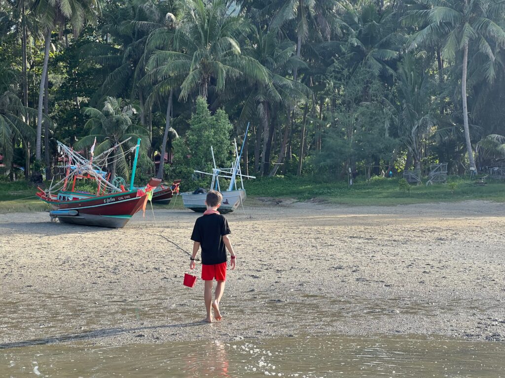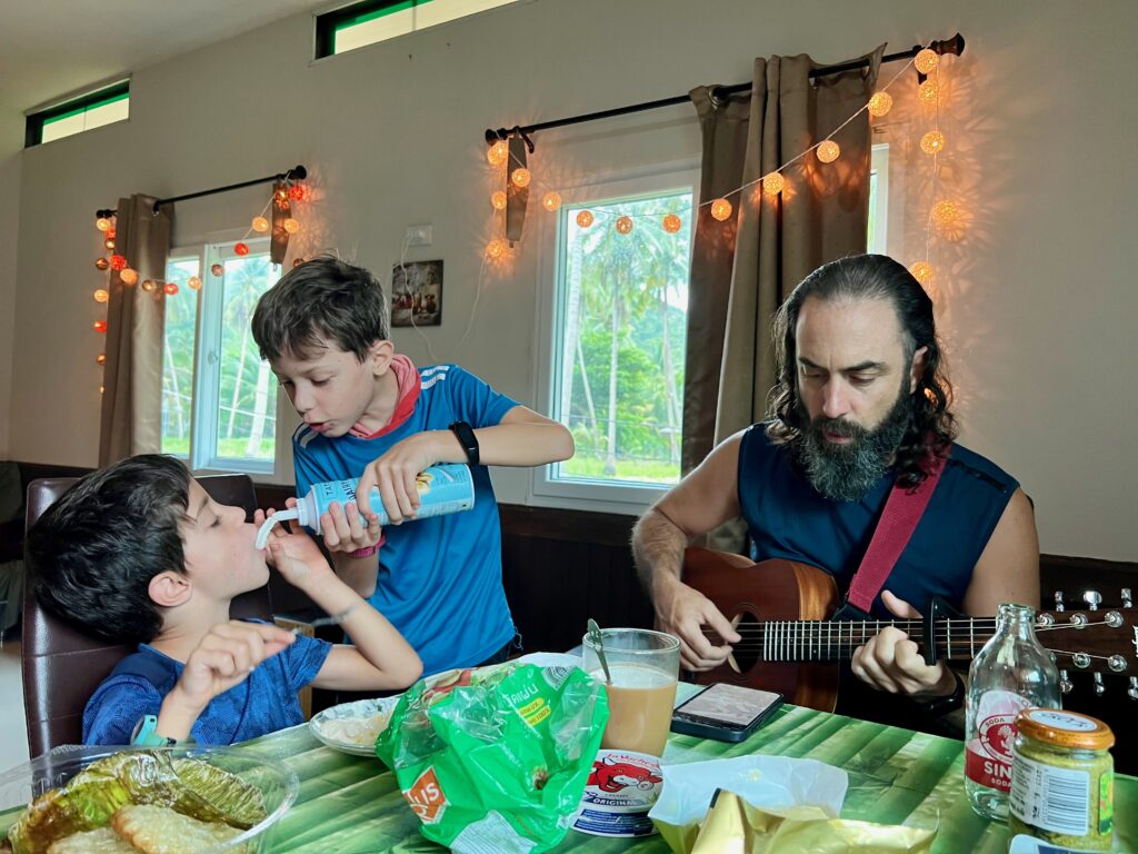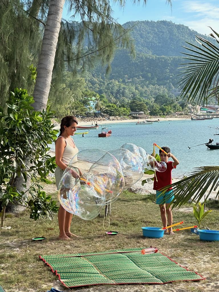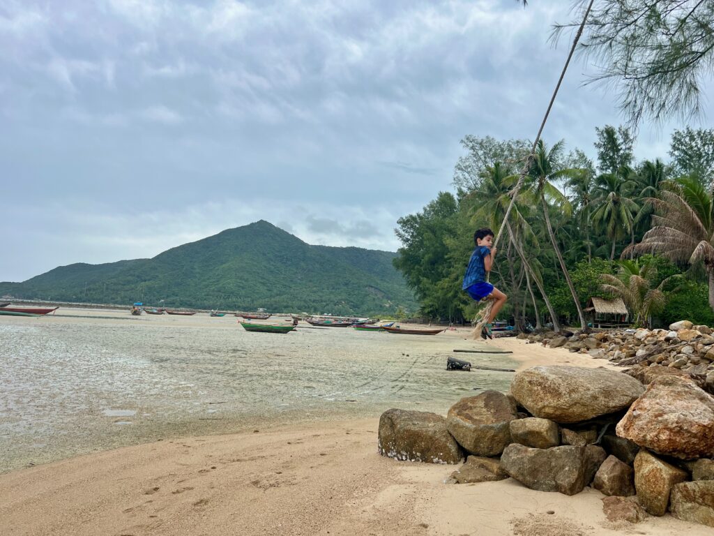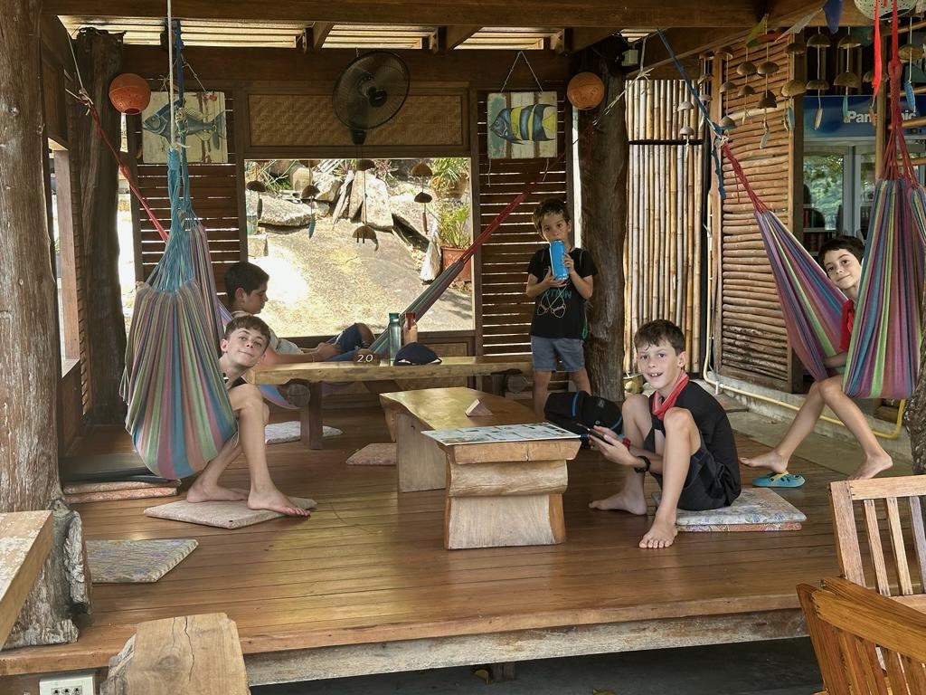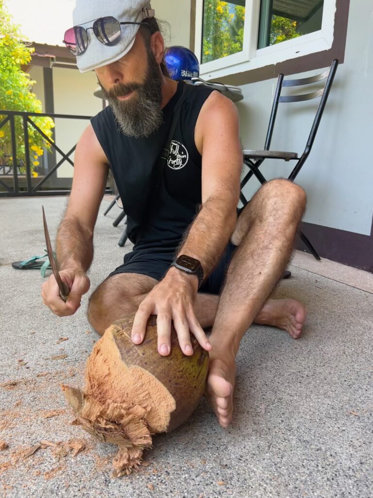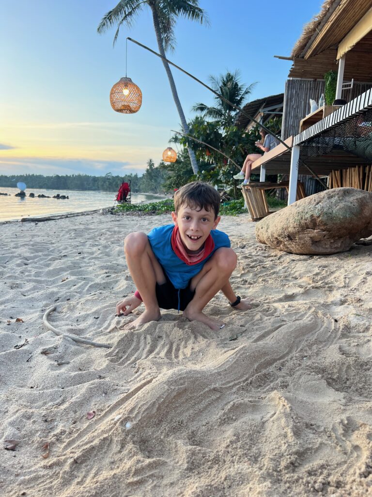 והחוף הצמוד יפהפה, וכשבאים אליו מוקדם בבקר יש מלא דגים שקופצים סביבך.. ויש גם מסעדה קטנה שכל יום שתיתי בה את הקוקוס שלי.. (ידעתם כמה קוקוס זה דבר בריא? בכל ארוחה בבית החולים הביאו לי גם קוקוס) מקום מושלם להחלים בו. כל כך הרבה טבע.. ובעל המקום – יוי, עם חיוך גדול וטוב שלא יורד לו מהפרצוף. ובנוסף לזה, גם השכנים מקסימים, והיה לנו איתם חיבור עמוק ונעים, וגם הילדים הסתדרו נהדר.