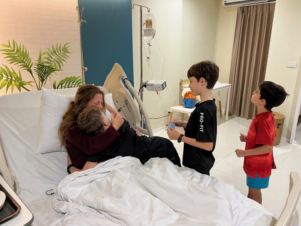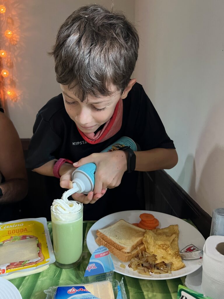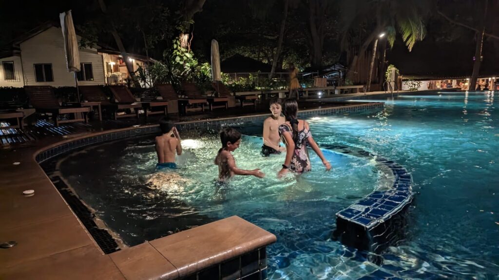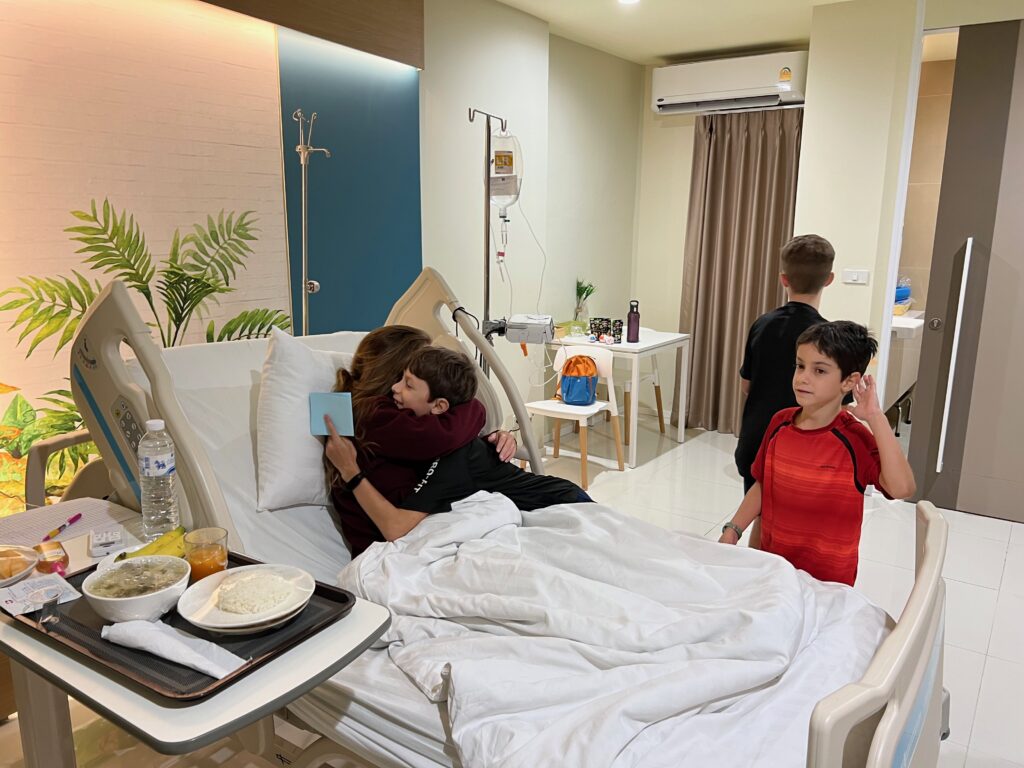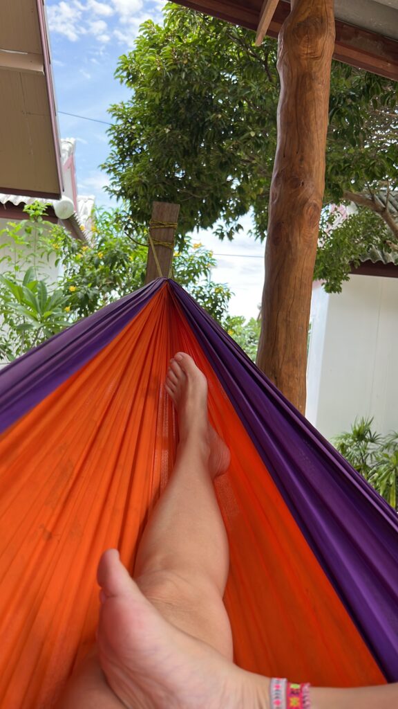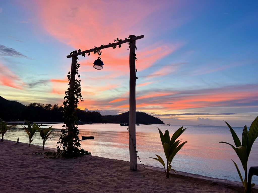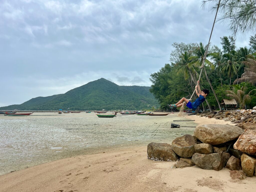 והחוף הצמוד יפהפה, וכשבאים אליו מוקדם בבקר יש מלא דגים שקופצים סביבך.. ויש גם מסעדה קטנה שכל יום שתיתי בה את הקוקוס שלי.. (ידעתם כמה קוקוס זה דבר בריא? בכל ארוחה בבית החולים הביאו לי גם קוקוס) מקום מושלם להחלים בו. כל כך הרבה טבע.. ובעל המקום – יוי, עם חיוך גדול וטוב שלא יורד לו מהפרצוף. ובנוסף לזה, גם השכנים מקסימים, והיה לנו איתם חיבור עמוק ונעים, וגם הילדים הסתדרו נהדר.