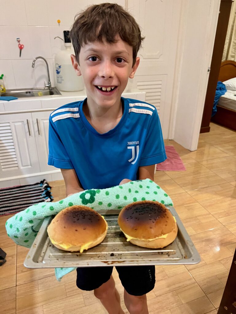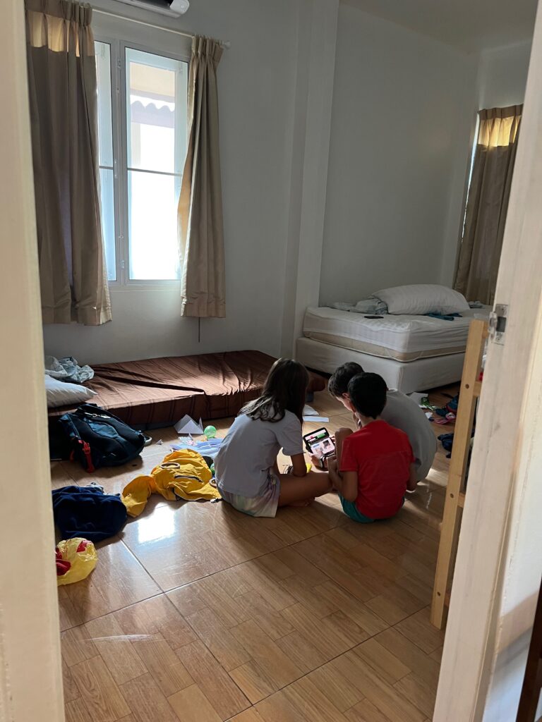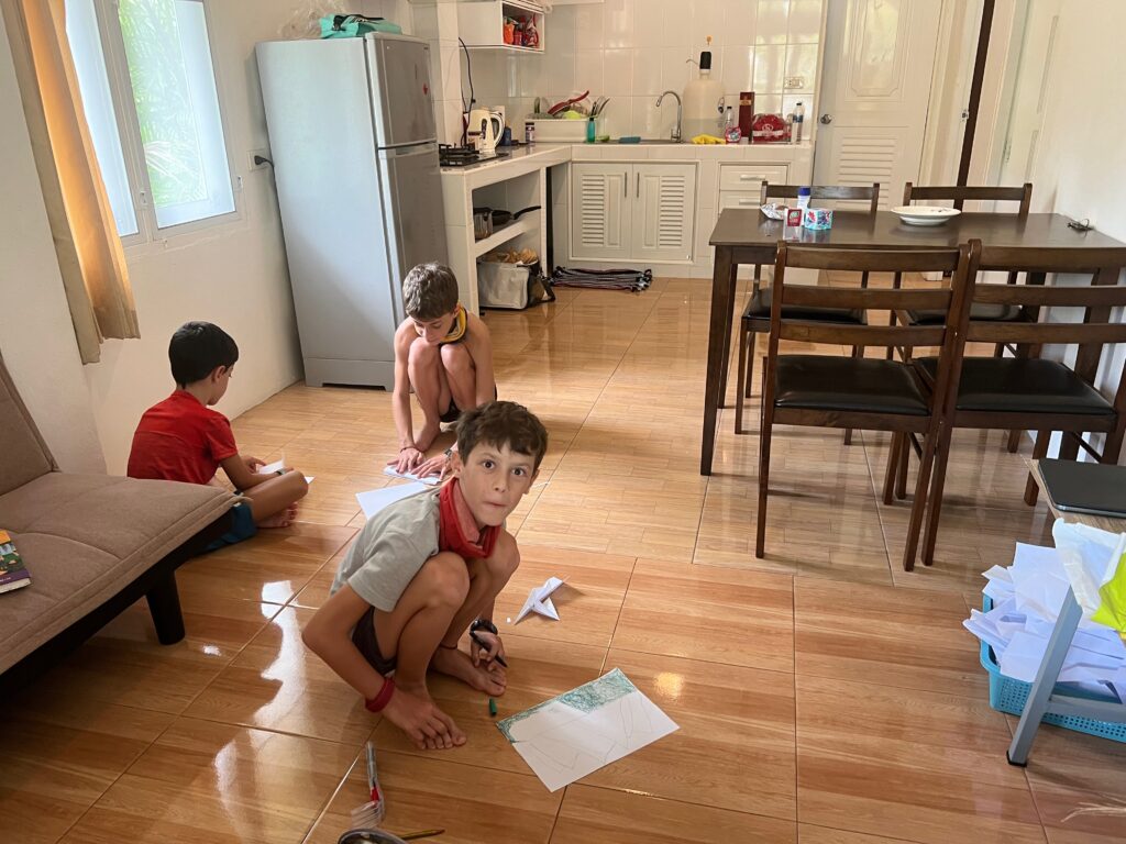 הדירה – כל מה שחלמתי, דירה תאילנדית פשוטה מטר וחצי מקו המים בצ׳לוקלאם, אהובתנו.. והשכנים, חברים יקרים עוד מלפני כמעט שנתיים בצ׳אנג מאי, שהביאו אותנו לפה, וגם שאר השכנים נחמדים.. והילדים שמשחקים שעות בחוץ ועוברים מבית אחד לשני, ועידו שמתחיל חוג עם ילדים בוגרים וגם מבלה שעות במשחקיה עם חברים בגילו ומעלה שאוהבים משחקי לוח. שעות על שעות מחוץ לבית.. מדהים..
