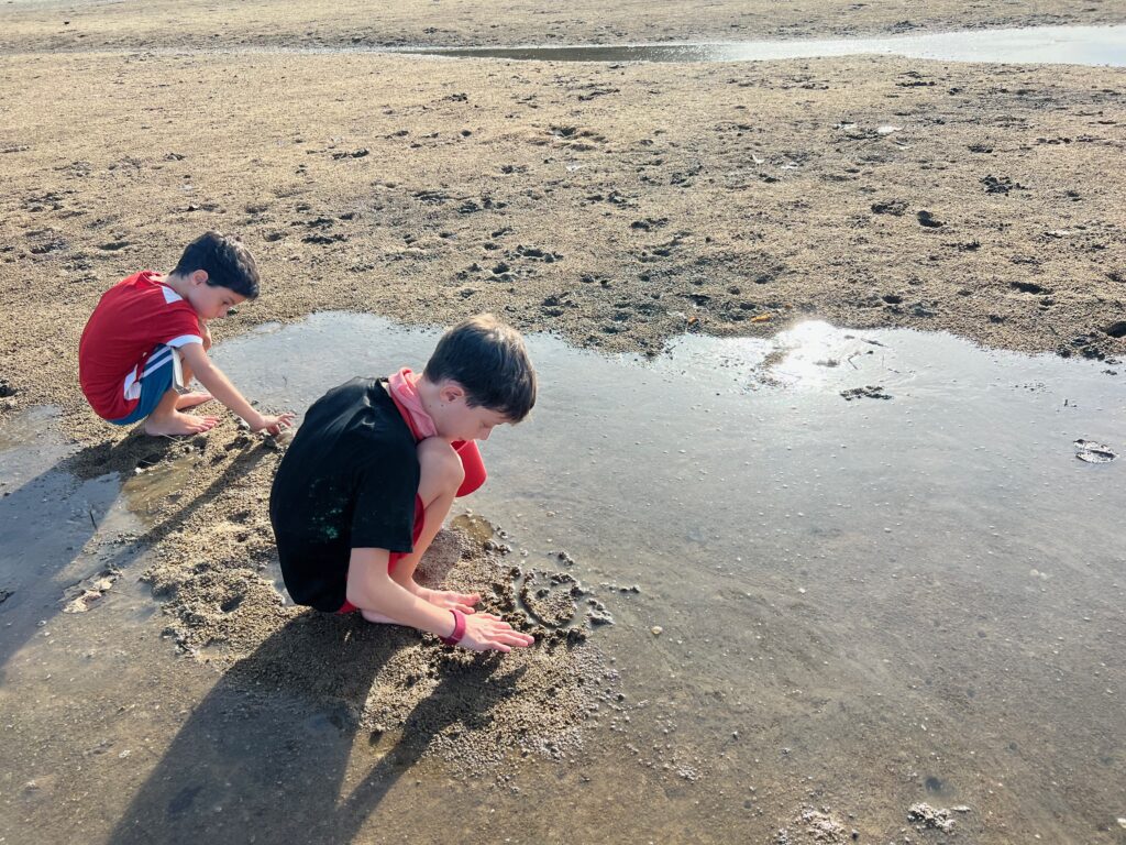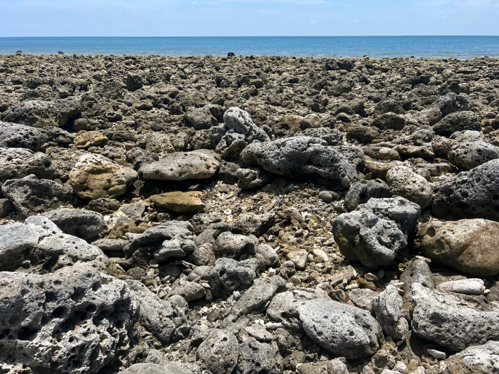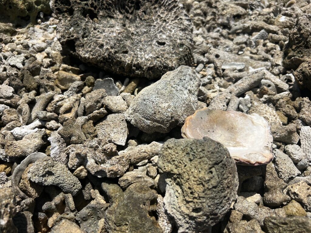 התאהבתי במקום הזה ממש, ולאט לאט גם החלמתי בו. 2 יחידות דיור צמודות, בכל אחת חדר שינה, וסלון מטבח גדול. הכל פשוט. גם קצת מתפרק, אבל באמת שהיה לנו שם בית. וכל המקום יושב לגדות שפך של נחל רחב אל הים. עכשיו עונה יבשה ובשפל בקושי זורמים שם מים. אבל יש שם מליוני סרטנים.. והם כן שרים.. לפחות ככה זה נשמע כשהם פותחים וסוגרים את הצוותות שלהם.. ויש שם גם שובר גלים גדול, שכולו בית קברות לאלמוגים וצדפים, שנראים עתיקים ממש ממש וכל הזמן מוצאים בינהם עוד צדף או אלמוג יפהפה ומסקרן.